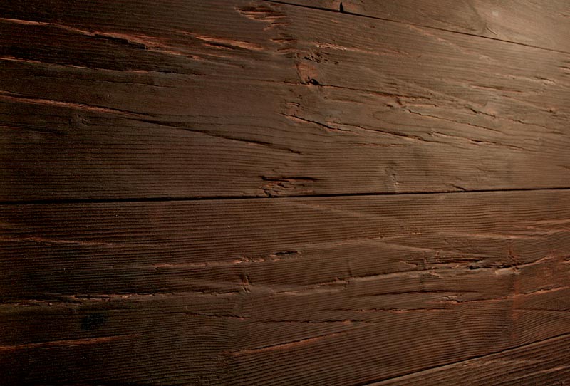 antiker Braunton, (auch im Kernholz) durch teilweise Kernrisse und Waldkanten wird der Charakter von Altholz nachgebildet |